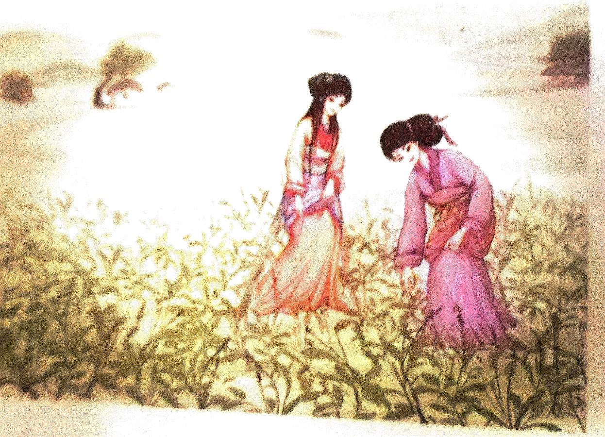 在农村那会儿,生产队二十左右的女青年特别多。约摸二三十个。薅秧时节,红红绿绿一长串人物手拄竹竿横在秧田里。满田满地此起彼伏的叽叽喳喳,很有“麻雀子嫁女” 的热闹。那年端午节,太阳几欲西行,生产队女社员去紧靠大路的稻田薅秧,一对青年男女从紧挨稻田旁的大路走过。他俩必须在我们众目睽睽眼皮底下行走。那男子走前,女子掉后,其间相隔五、六步距离。犹能忆起两人神态之紧张。他们满面通红,埋下脑袋, 别扭得几乎要出左脚甩左手。爱捣蛋的金仙嘬起嘴皮飞喊:“哦……天上的乌云撵乌云,地上的婆娘撵男人……”跟着,我们一帮女孩儿也会跟着金仙敞开喉咙飞喊:“天上的乌云撵乌云,地上的婆娘撵男人……”