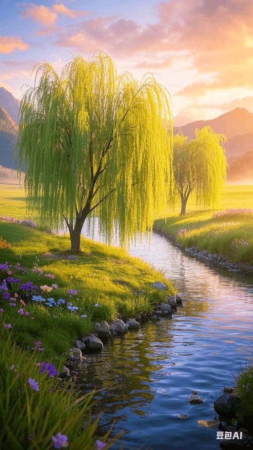 睡柳朦胧飘白絮,苍松矍铄染银头。