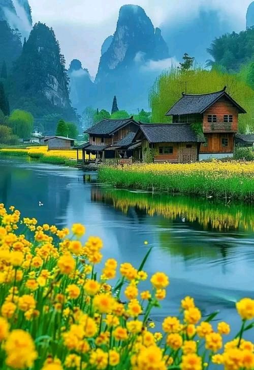 神龟岭上映斜阳,雨润芳姿遍地香.