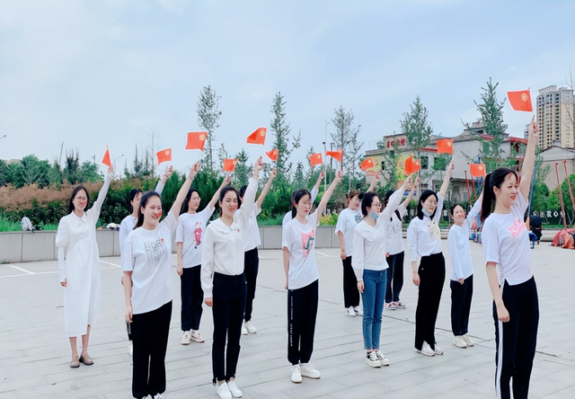 火红的团旗,代表着前进的方向,一张张充满能量的笑脸,展现了教师们不一样的青春风采,也让我们看到了前进路上无尽的希望。