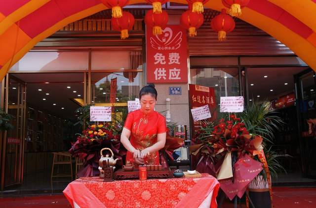 由武夷星茶业的茶艺师演绎的高雅茶道茶艺,向莅临现场的宾朋们倡导一种恬静淡雅的人生心态与多滋多味的生活境界。在武夷星茶业水头店的大门口,有一处醒目的标语“爱心供水点”,特为社区居民以及过路行人免费提供茶水服务。