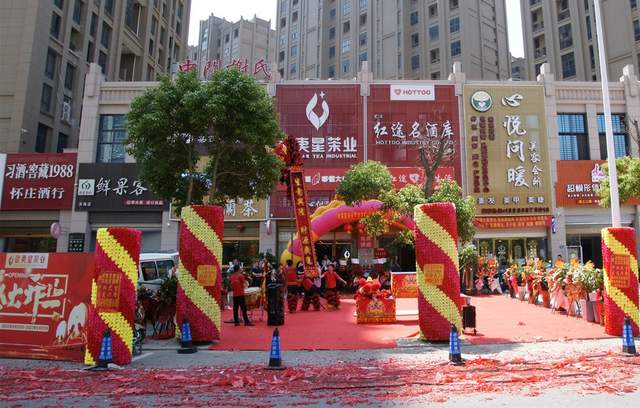 上午10点,在南安市水头镇海联创业路滨海御景城,武夷星茶业水头店与法国红途名酒库水头店张灯结彩,一片喜庆热闹的景象。传统的舞狮武术表演,精彩迭出,传达了闽南人龙腾虎跃的性情秉性与爱拼敢赢的创业精神。