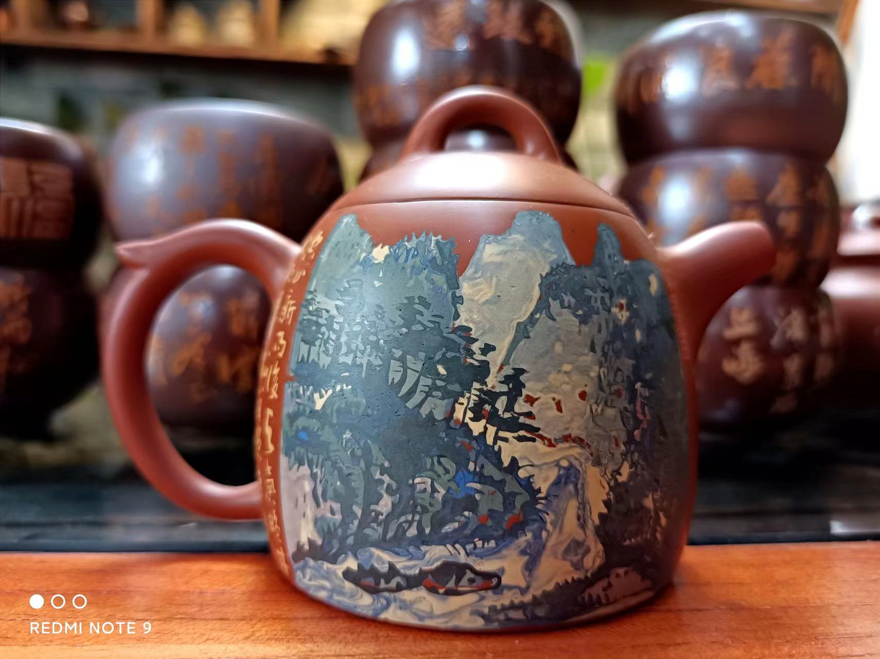 李文说:“建水紫陶有时会让外人觉得很贵,但当了解制作过程中十分艰辛的过程时,你就不会觉得贵了。”就建水紫陶壶的中国山水画装饰来说,要经过多道彩填来完成的,刻了填、填了刻,经过几十次反反复复的刻填,没有经历制作的艰辛,是很难知道其辛苦的。漫漫十九年,李文遵循着传统,打造着一位工艺美术家的辉煌;同时又依托在创作上的开创性和时代感,或激扬、或沉稳、或散淡、或苍茫,通过不断凝练自己的修为,靠人性高于艺品的追求,演绎着当代工艺美术家的名家风范