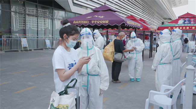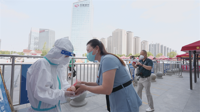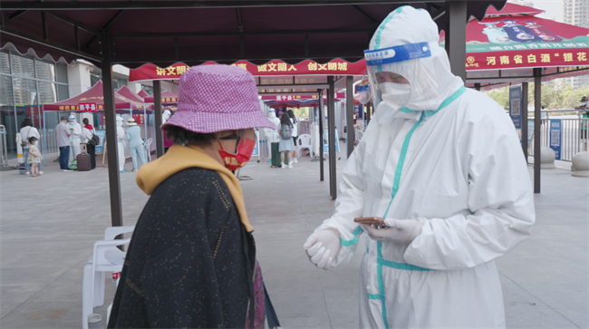 驻马店市消维会秘书长梁丽在高铁站慰问威盾安保一线防疫人员