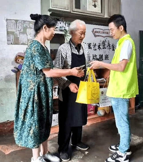 首先,志愿者们来到泉塘镇南薮村困难老人、帕金森病患者朱志光家中进行慰问,朱老是“湖南好人”谷正平多年来义务理发和帮扶的对象,他右眼失明,走路不协调。志愿者们送上爱心款,谷正平现场为朱老理发。