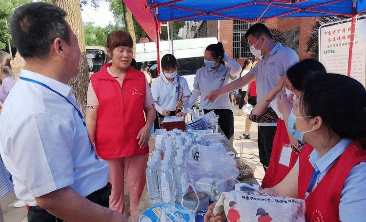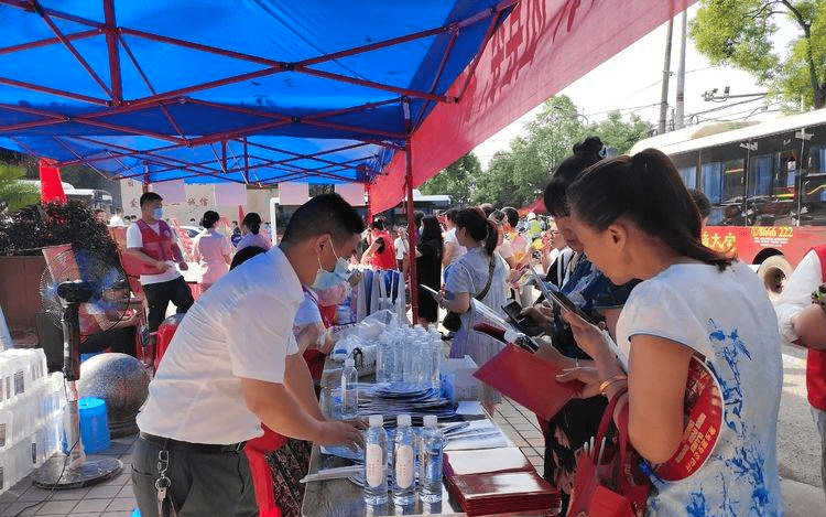 活动中,志愿者们用悉心的服务、亲切的笑容和矿泉水来缓解考生和陪考家长的焦虑和疲累,积极协助维护考点周边秩序,那一抹“志愿红”成为了高考考点门口一道亮丽的风景。