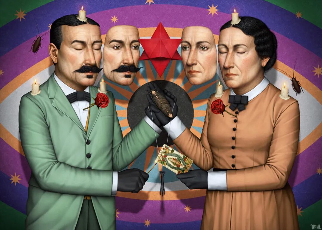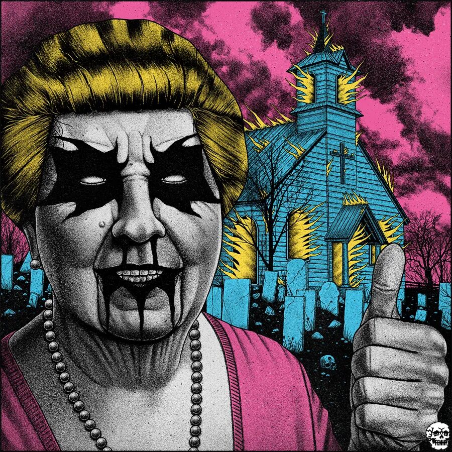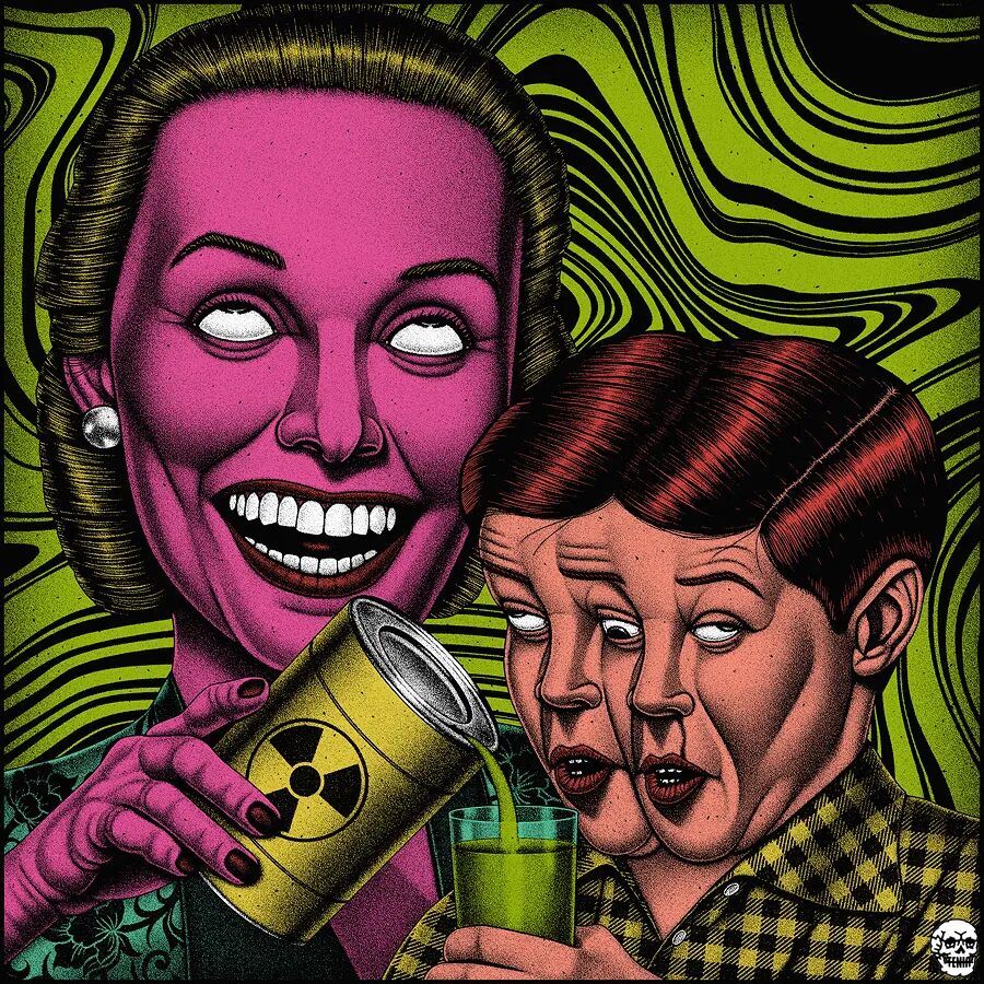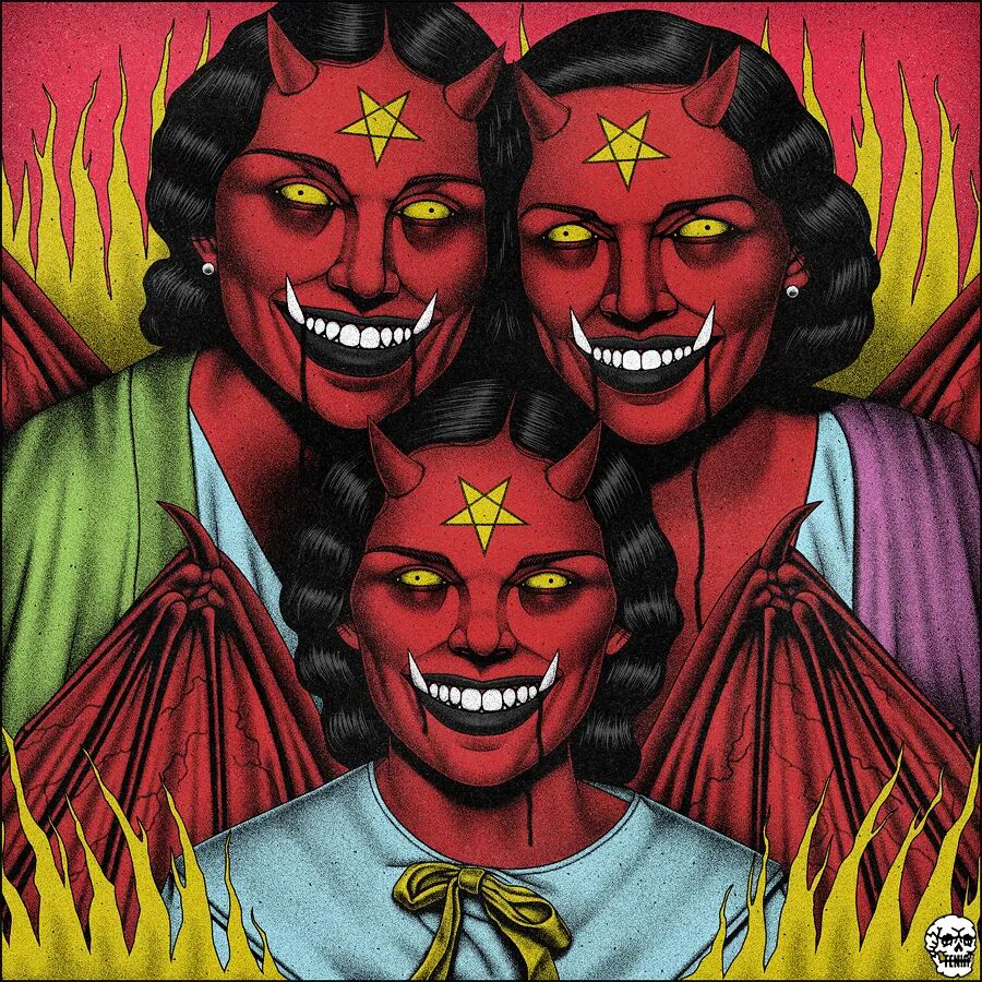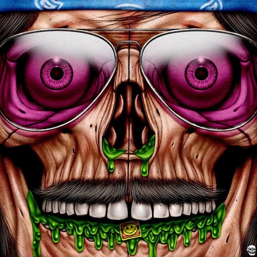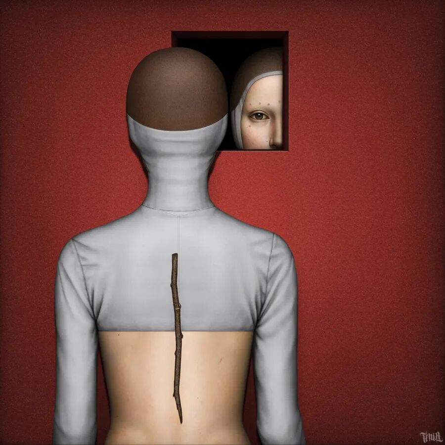 作品很多与生命的脆弱与短暂有关,开始与终点,通过人像的方式构成了超现实的表达。复古的画风与流行文化的结合,充满了黑色幽默。