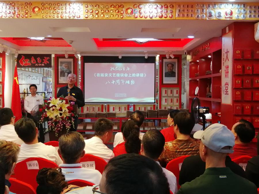 最后,深圳市原政协副主席程科伟、深圳市社科联吴奕新、深圳市党校著名教授张磊、深圳市毛体书法家协会主席陈仕强、副主席谷新光等分别在台上就延安《讲话》精神以及一些个人体会与会代表进行了精彩分享。
