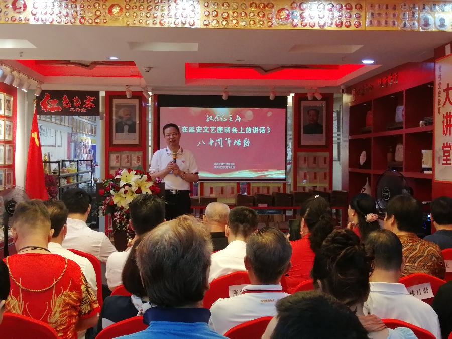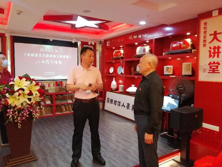 6月9日,在喜迎党的二十大召开之际,深圳市毛体书法家协会在罗湖古玩城《张志新•润志岁月文化馆》召开纪念毛泽东同志《在延安文艺座谈会上的讲话》发表80周年,深圳市原政协副主席程科伟,深圳市社科联博士吴奕新、深圳市委党校著名教授张磊出席,深圳市毛体书法家协会主席陈仕强、副主席林丹凤、谷新光、秘书长张志新、曾荣获1979年对越自卫还击战一等战功、战场救护模范廖其定等30多名(毛粉)参加座谈活动。