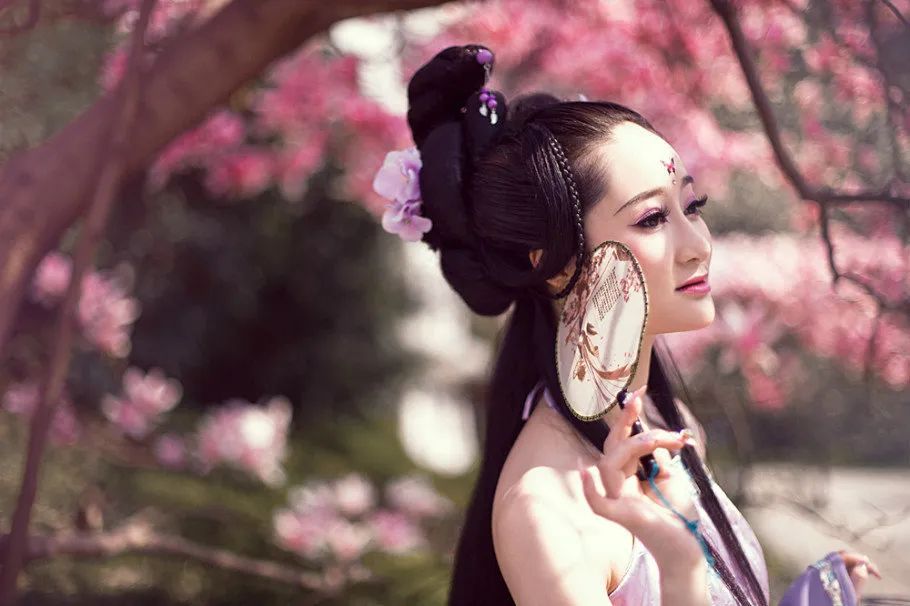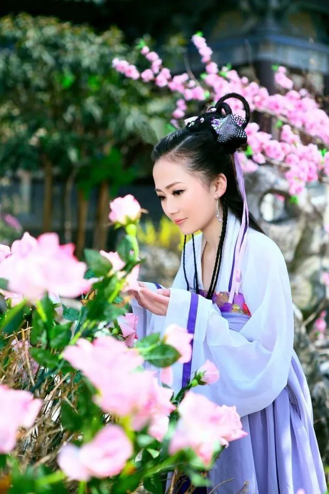 紫色朦胧恍顾,郎君抚伴身旁。