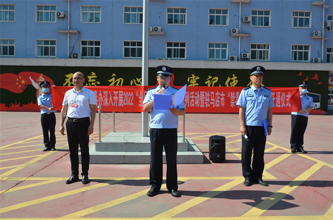 市禁毒办常务副主任、市公安局禁毒支队政委李浩宣布开通“禁毒号”公交专线,市公共交通有限公司党委委员、副总经理张旭表示禁毒宣传责无旁贷,将对此次公益宣传活动给予大力支持,并详细介绍了“禁毒号”途径路线及宣传影响范围。