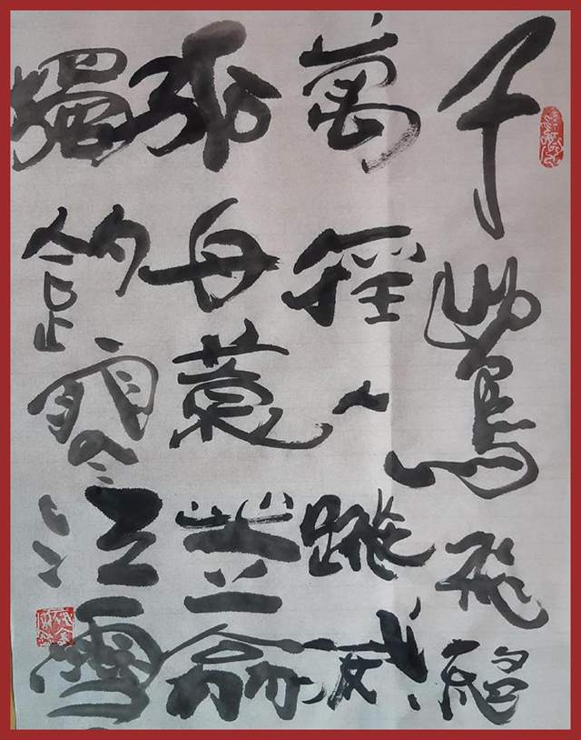 隶书:唐柳宗元诗《江雪》。
