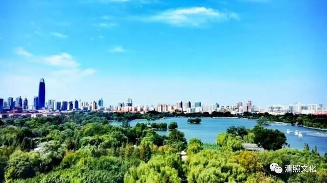 夏季明湖碧染天,