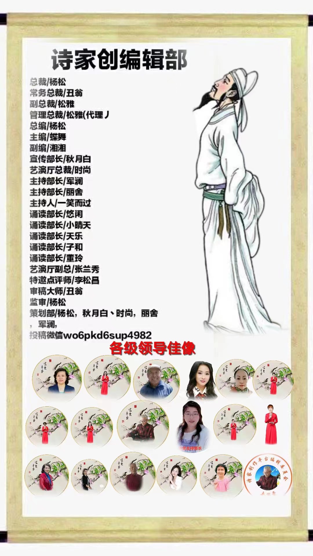 本期合辑作者:杨松,丑翁,松雅,湘湘,周凰,庄生,唐春林,王宣球,杨奎伦,兰草,七里香,书乐,精灵天使,佘秀英,李凤云,虞慧,诗情画意,春禅,李学荣,崇,福尔,王省南,笛子,玉树临风,枫桥夜泊,余飞扬,贾玉欣,王兴伦,韩文祥,郭晓春,朱守平,王建华,赵洪敏,春天,杨明才,墨脉,潘百灵,平湖,金荣,闲鹤,桃子,白荷,白燕,丹风情韵,苏涟,王今韦,源流诗纪,若曦,青岚回丰。