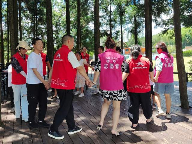 游玩结束后,“妈妈”志愿者带着孩子们前往活动树林。“妈妈”志愿者和孩子们组成“亲子”家庭,通过《做皮球》、《揪尾巴》等亲子游戏,使每一个参与的“亲子”家庭都体验到了“亲子”运动的快乐。