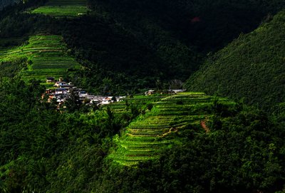 山村,这头连着人间那头,连着起伏的山峦