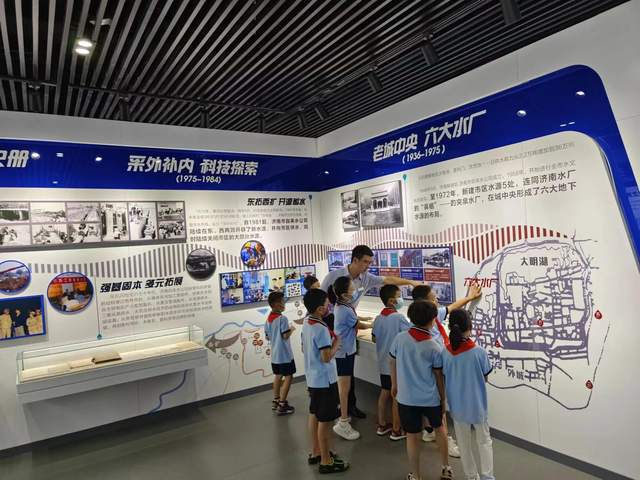 作为山东省首家供水主题历史展馆,济南水务供水史馆建成于2014年,2021年进行了升级改造,“泉水伴民生”是史馆的主题,史馆集中展示陈列了自上世纪30年代至今大量与水相关的历史文物和照片,采取时间纵线与业务横面相结合的形式,用四大篇章全面介绍济南水务近90年的发展历程,分别为泉汇自来、似水流年、源来如此、润泽有道。
