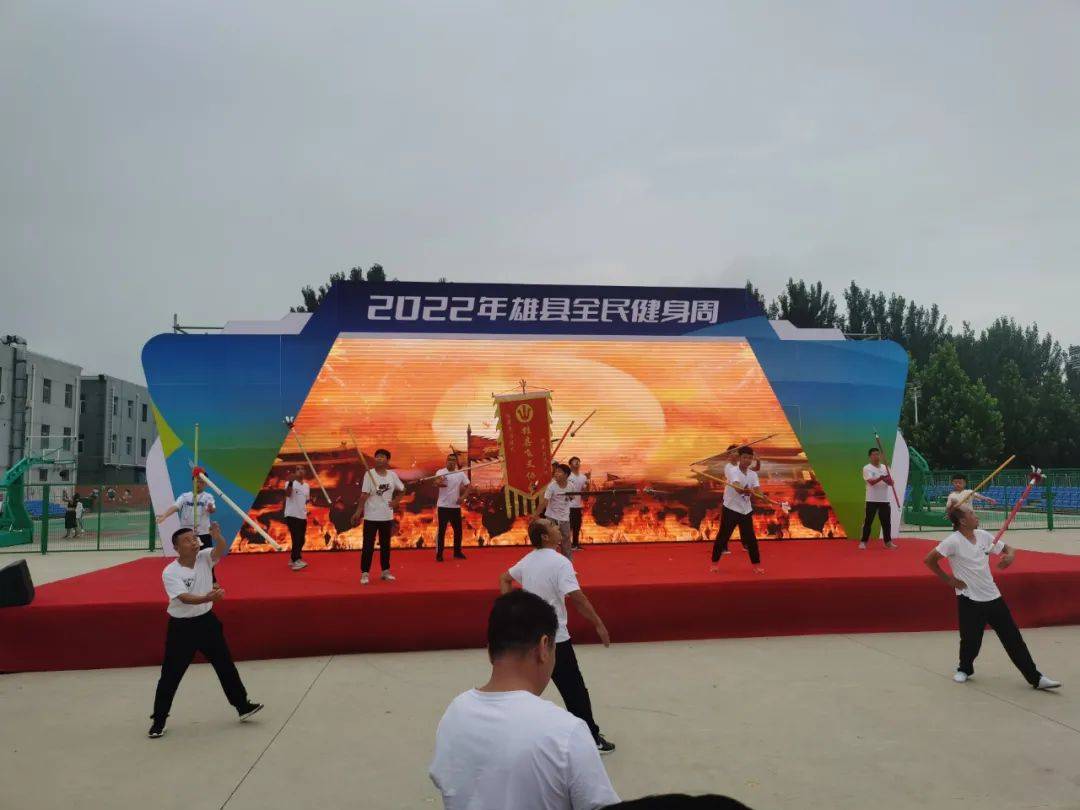 为进一步加强全民健身和全民健康深度融合,推动群众体育和竞技体育全面平衡发展,不断提升人民健康水平,在8月8日全民健身日到来之际,由雄县人民政府主办,雄县教育局承办,河北引航体育文化发展有限公司独家运营的“心向党 健未来——2022年雄县全民健身活动周”启动仪式在黄湾村党群服务中心健身广场隆重举行。县委宣传部常务副部长李冬、县妇联主席高春涛、县总工会主席赵丽华、县工商联党组书记刘克梅、教育局副局长王景炜、雄州镇宣传委员师静萍参加活动;乒乓球世界冠军、雄安新区乒协主席牛剑锋作为特约嘉宾出席活动。