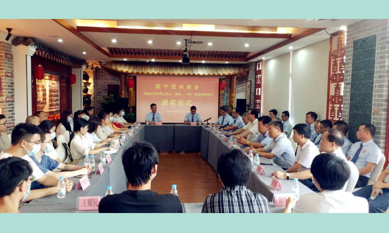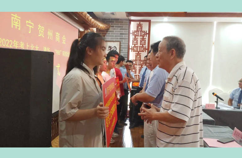 2022年8月7日上午,广西南宁贺州商会在商会会议室隆重举行颁奖仪式,奖励贺州籍考上北大、清华和贺州籍在南宁考上“985"院校的优秀学子。会议由执行会长黄绍活主持。自治区原常务副主席黄道伟、自治区原党委常委、秘书长邱石元、自治区原人大副主任邵博文出席了奖学活动,商会领导和会员共40多人参加了颁奖仪式。