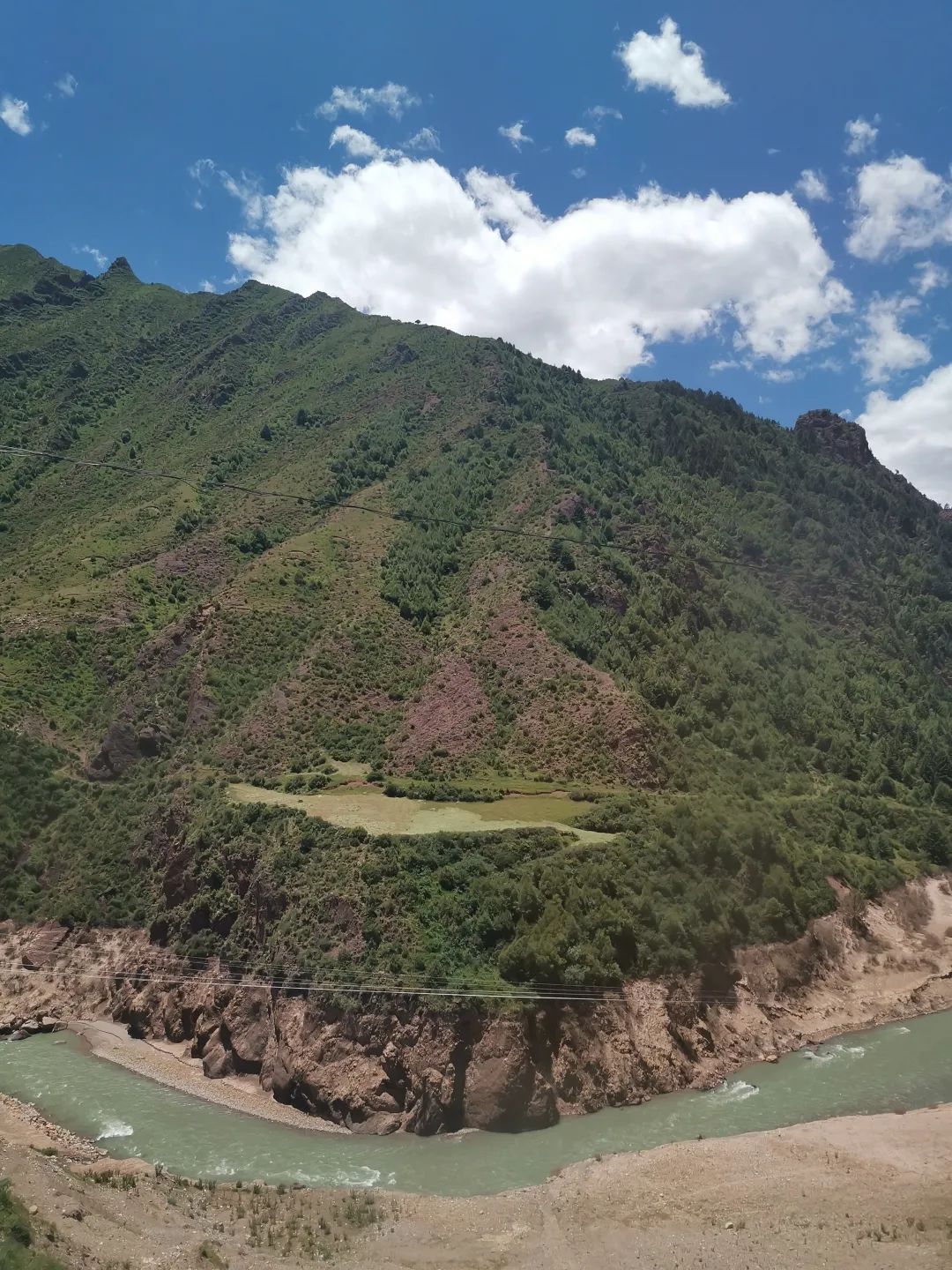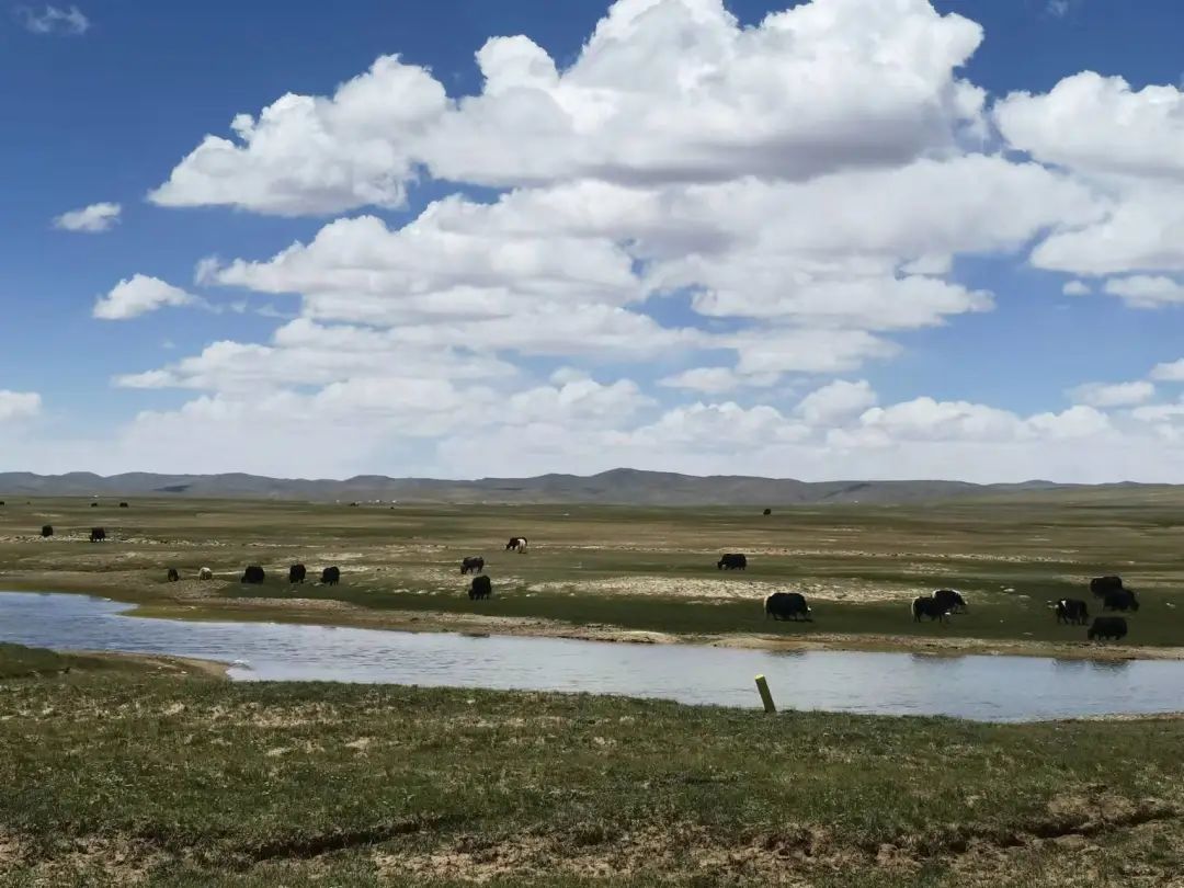 我们自驾队15个人,两部车。从那曲回程的选择各有倾向。有几位想走青藏北线,想看可可西里无人区,亲身体验向往的唐古拉山口,昆仑山口。另一部分想体验一段川藏北317线。这里自然风景优美,尤其人文内容丰富多彩。为充分满足各自的愿心,两部车分了两组,约好3天后在青海共和县会合。疫情期间尽量避免进入西宁等大城市。昨晚午夜到了索县,黑古隆冬加疲惫没什么感觉。早晨8点从县城驰出,才发现索县原来很美。当地的口号是"藏北极地,生态索县"。317国道迤逦而行,左右两旁是圆顶大山,肥美的牧场大批的牦牛群。旁边有条卡曲小河,清澈流淌。举国上下到处喊生态。那曲市的生态可不一般,它是中华民族的生命线。长江,怒江,澜沧江等三江的水源都在这里涵养,然后水滴成溪,成河,成大流。那曲有"中华水塔"之称,真不是吹。