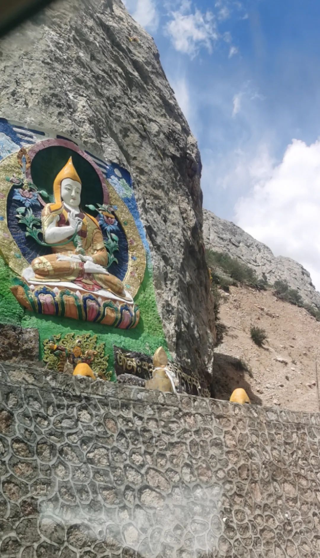 玉树藏族自治州,是我国著名的"三江源"自然保护区。又是歌舞的故乡。玉树,是2010年发生过一次地震出名的。当时房屋倒毁,道路中断,全国人民为此揪了把心。事过已12年看玉树,简直帅呆了。玉树藏族自治州虽属青海省行政管辖,但沿线农牧民的生活环境和生活方式与西藏并无二样。绿色的高原草场,满坡的牦牛饲养。山水漪丽,蓝天白云。沿途到处有崭新的彩边帐篷,花色阳伞,穿着新衣的牧民兄弟正准备在雪顿节大狂欢一把。离玉树市区还有20余公里,导航先把我们领到"文成公主庙"。本文在游览西藏拉萨大昭寺时提到过文成公主。在藏区10多天的游览中,藏区文化,藏传佛教寺院可看到,文成公主备受藏区人民爱戴。她的确为汉藏等地民族融合立下了万世功勋。在西藏的一些顶级旅游点,如大小昭寺,布达拉宫等历史文化文物,都与文成公主密不可分。远看到一座金碧辉煌且高大气派的寺院,以为是文成公主庙。近看是"禅古寺"。功课完才眀白,这么大寺院的存在,主要是为了护持文成公主庙而建。1300年了。