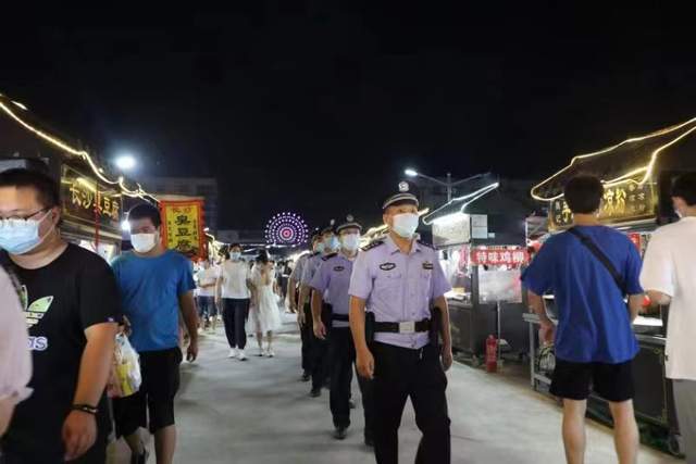 “这么晚还在巡逻,真是辛苦你们了!好孩子,快喝口水凉快凉快吧。”8月9日晚21时,驻马店市区天中广场依然欢声笑语、人声鼎沸,有市民在跳广场舞、有父母在陪孩子玩耍嬉戏,还有三五成群的老年人兴致勃勃地谈古论今。一队警容严整的民警辅警正巡逻经过。正在和老姐妹唠嗑的张大妈看到汗湿衣背的民警,心疼地递上矿泉水。带队民警王勇笑着婉拒了,“谢谢大妈!这是我们的工作。只要大家伙儿都平平安安,我们累点不算啥。”