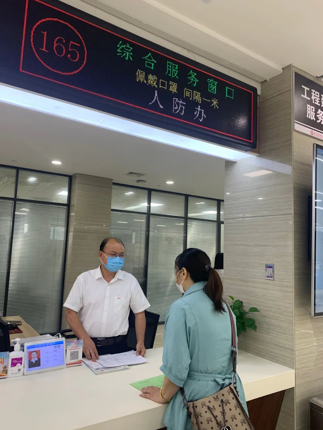 何方亲自为建业世和府三期项目办理了新建民用建筑防空地下室同步建设审批业务,全程体验人防工程报建审批流程,并与窗口工作人员以及现场企业办事人员进行了深入的交谈,详细询问了解办事流程、所需资料、办理时限、办理速度,了解企业办理人防事项的需求,并听取相关意见和建议。