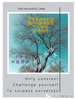 1、【双槐文学艺术社】为文学和书画艺术综合微刊平台,欢迎您关注公众号shhwxyshy。投稿方式:邮箱投稿564231311@qq.com。为了扩大宣传,凡双槐文学艺术社刊出作品,同步在微博推出。优秀作品在都市头条刊发。