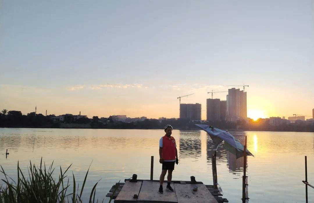 8月19日晨六点二十左右,该联合会骑行小分队赶到北塔湾,发现很多钓鱼台依旧耸立在资江岸边。