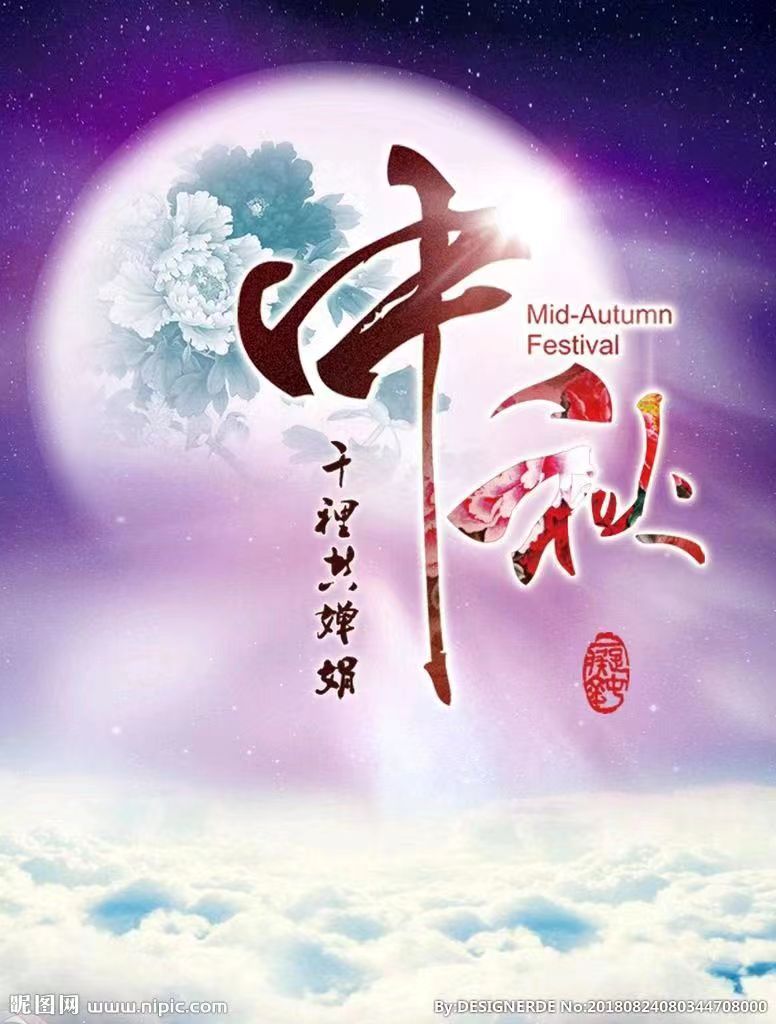 中秋皓月挂苍穹,共赏一轮美玉明。