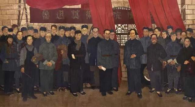 朱建伟国画作品《鲁迅艺术学院成立》局部