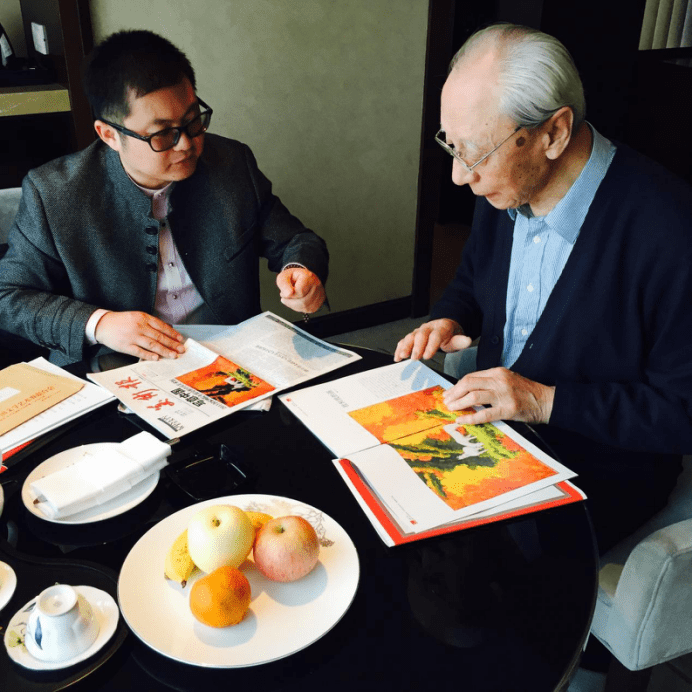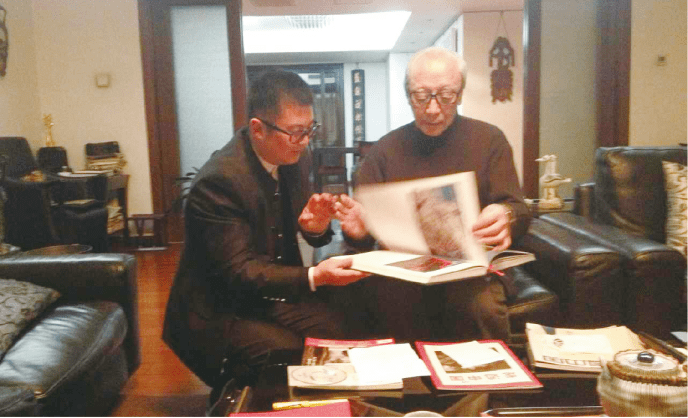 本文作者南沙与中国油画学会名誉会长詹建俊先生在一起交流