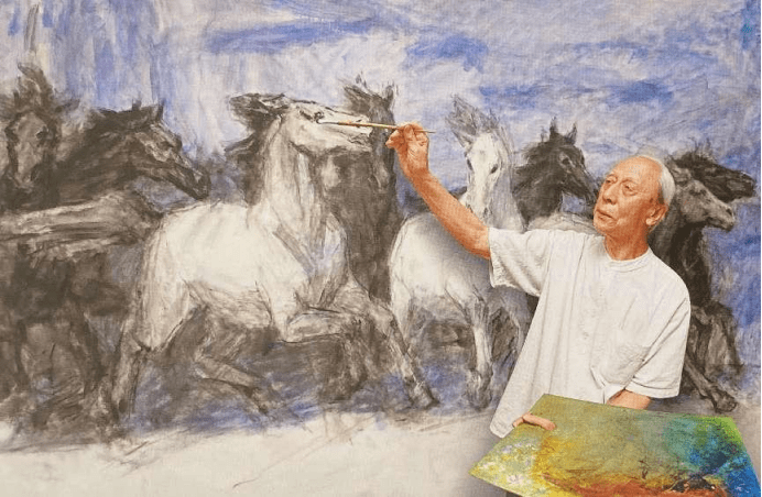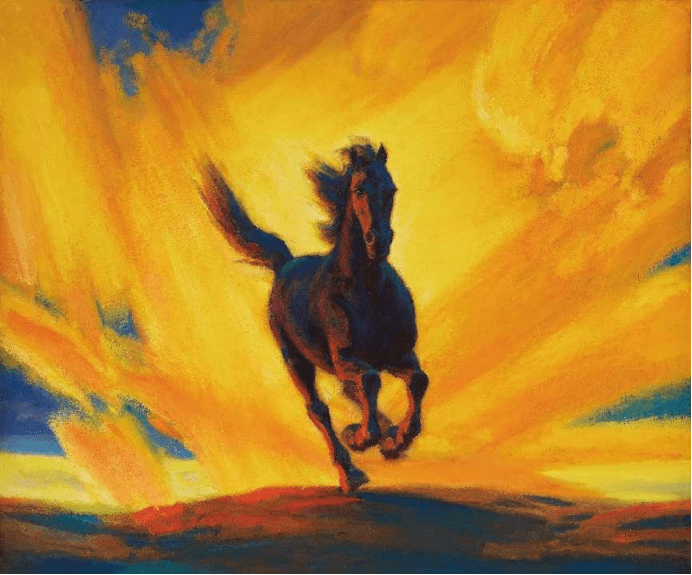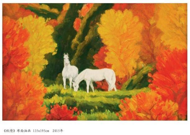 近些年来,发现詹先生画了很多以《马》为题材的油画作品,都是大笔触、大色块,使画面具有浪漫主义气息,激情壮美。如《草原上的天空》《红云》《冬雪》《天地行》《风沙行》《光明行》《秋情》等这些作品都具有诗性的表达。我想,近代国学大师王国维《人间词话》书中的那句话比较贴切:“一切景语皆情语”。詹先生的作品是根植于中国传统文化的土壤,用西画的技巧和颜料,所折射的是新时代充满活力的精神。