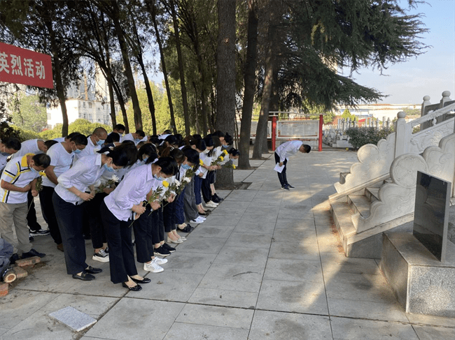 最后,全体职工怀着崇敬的心情绕纪念碑一周瞻仰献花,表达对先烈的无限敬仰和深切哀思。