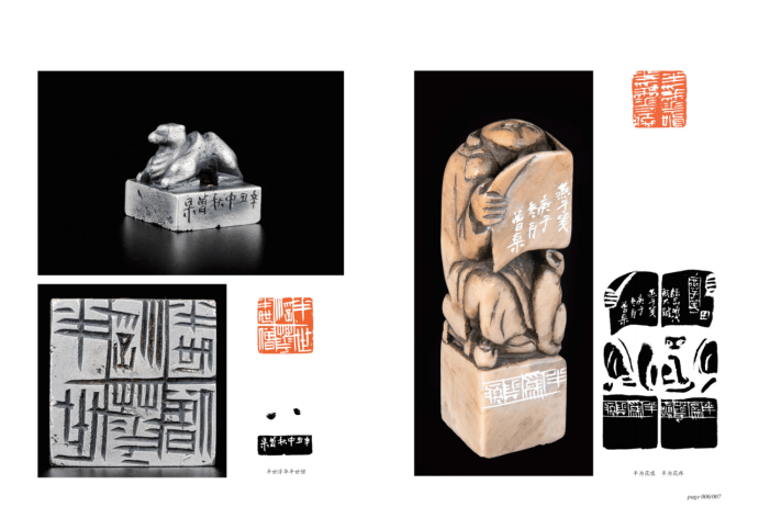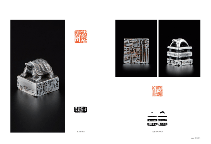 第二是曾杲在印章制作工艺和材料上的入古出新。在元、明之前,印章材质多为金属,到文人篆刻兴起之后,印章材料转向石材,金属印章只是少数篆刻家偶尔为之。曾杲在自己近十年来的创作中,则多以金属材料为主,这在当代篆刻家中是“领跑者”。金属材料的引入,在形态上让印章更为“复古”增添了很多情趣,与之同时,金属材质的印章更适合把玩,在印章整体的审美性上也扩展了外延。