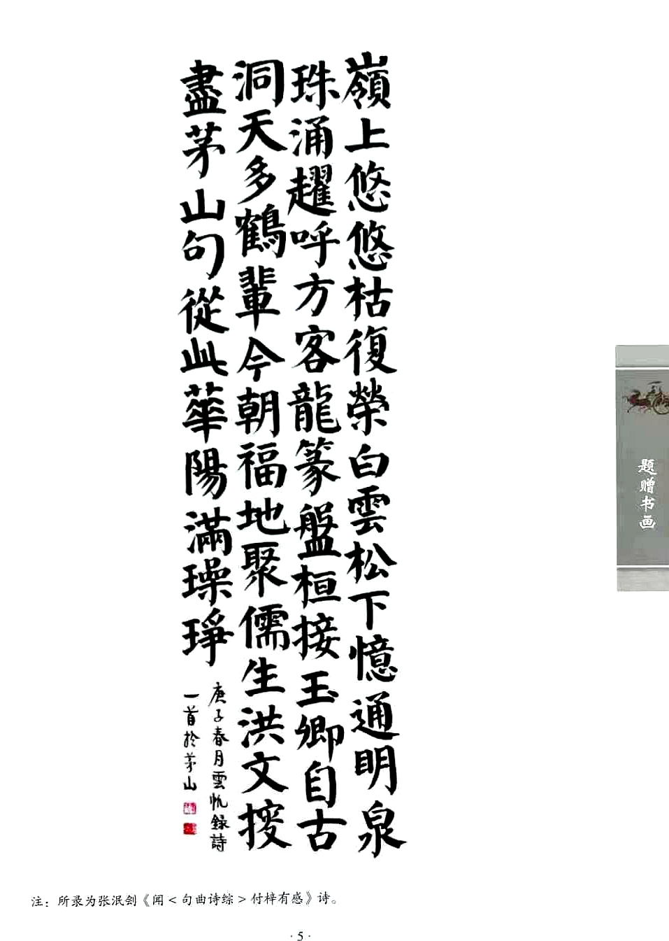 句容市诗歌协会张泯刽主席《闻<句曲诗综>付梓有感》诗,中国道教协会书画院张云帆委员书赠。