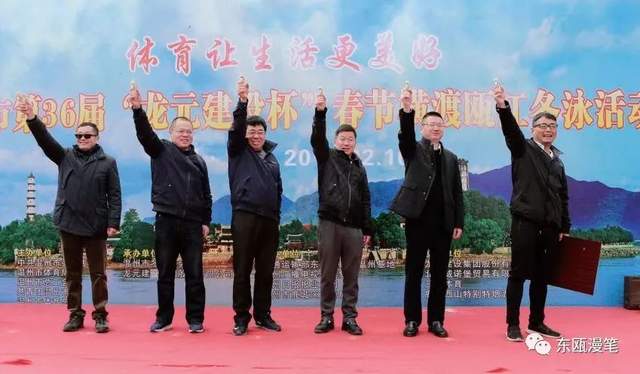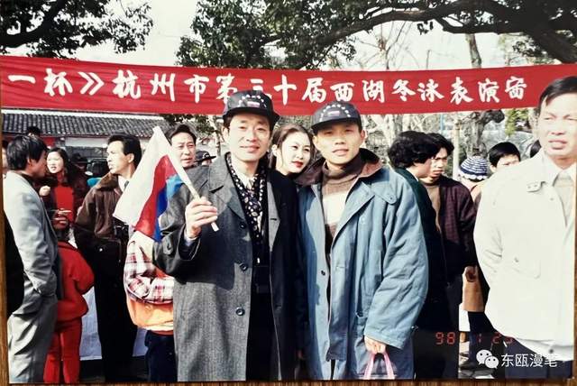 温暖集体,不曾分离。由于工作原因,我没能坚持住,成了冬泳“逃兵”。但是,协会历任领导和泳友们从没把我当“逃兵”看待,但凡有大的活动都通知我参加。当然,我也舍不得离开冬泳这个温暖的集体。三十多年来,我已记不清有多少个正月初一是在码头为泳友们“站台”呐喊的,我也记不清为冬泳写了多少篇新闻报道。1998年泳友们在杭州西湖畅游,我发回消息《我市冬泳健儿在杭表演受欢迎》。《中国体育报》《浙江日报》等媒体都有我写春渡的新闻报道。