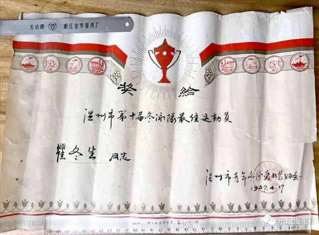 风霜棱棱,冬泳健身。1986年11月报道冬泳训练班时,我这样写道:“冬天,嬉戏碧水清波,那砭人肌骨的冷风寒水,叫你直打哆嗦,但它给人身心健康带来的好处,远非夏泳可以媲美。”这也是我的亲身体会。那时的温州,冬天比现在冷,水温常在10°以下,入水似针扎,出水爱哆嗦。最初三年,我几乎天天“泡”在九山游泳池里。有一年因出勤、游程名列前茅,队里奖励我两条背心呢。冬泳之后,“绿豆芽”的体质明显提高,“夜猫儿”的亚健康得到改善,几乎不感冒了,同事们都羡慕我脸上“发毫光”。