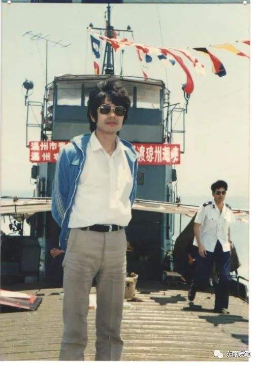 1988年4月温州运动员首次组织横渡琼州海峡,在海军某登舰艇上采访。