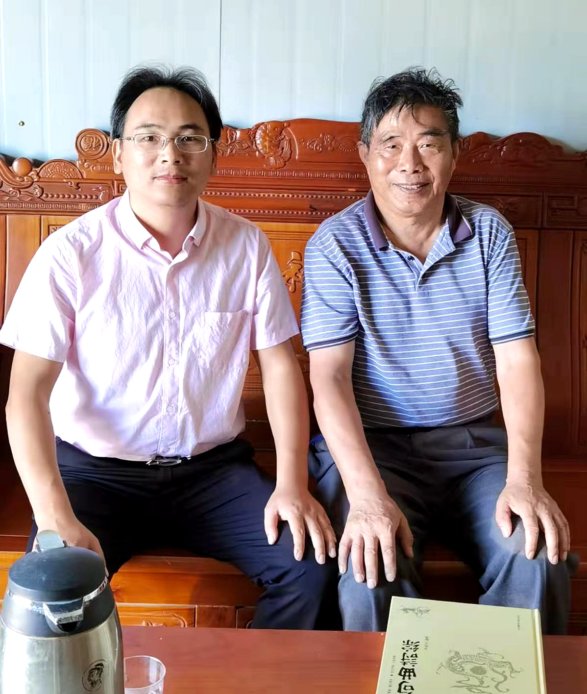 本文作者拜望并请教江苏第二师范学院原中文系主任丰家骅教授(右)(2021.10.4)。