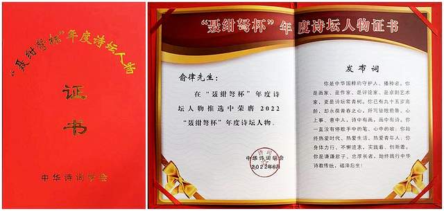 ——2022年度诗坛人物”证书,兼和诗翁《艺术打虎》