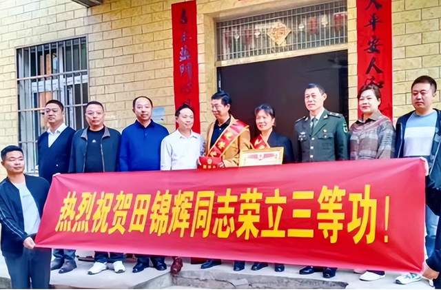 连日来,现役军人田锦辉、鲁佛武的家乡喜庆的祝贺声打破了往日的宁静,武穴市退役军人事务局党组书记、局长蔡俊军等领导来到两位军人家中,为他们的家人送来了在部队荣立三等功的喜报,田锦辉、鲁佛武的家人接到喜报喜上眉梢,脸上写满骄傲和荣光,这荣誉让家乡父老也倍感欣慰和骄傲。快看,热烈祝贺田锦辉同志荣立三等功!