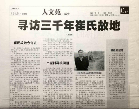 2003 年12 月5 日,《齐鲁晚报》刊登我写的《寻访三千年崔氏故地》