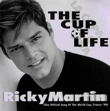 La Copa De La VidaRicky Martin - The Cup of Life1998年法国世界杯的主题曲《The Cup of Life》,中文名为《生命之杯》,歌曲由拉丁音乐的代表人物瑞奇·马丁演唱的歌曲,这首歌也被称作世界杯的经典主题曲之一,传唱度较高。歌曲中的鼓乐节奏和号角奏鸣的旋律都十分振奋人心,特别是副歌“Go Go Go Ale Ale Ale”的部分,给人很强的代入感,后来,此曲成为很多足球节具用来讨托气氛的第一选用曲具。