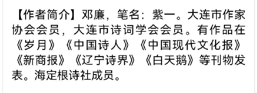 【总编评诗】诗中有画,意境营造的非常好。空心的芦苇杆儿、飘飘洒落的雪花、湖边的一行行脚印、湖冰下有着一个不安分的向往和憧憬水映天光的隐隐期待液态跳动的“心脏”……诗人的诗素洁洗练清新唯美诗意和张力俱佳。(子线)