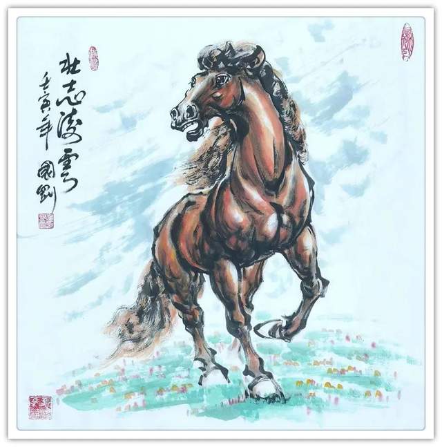 2018年10月,国画《新时代新征程》《壮志凌云》被中国华侨历史博物馆永久收藏。中国人喜欢龙马精神、求财祈福,朱砂画民间有驱邪祈福之美传,尤其近期用朱砂创作的《马上有福》《福在眼前》《龙马送福》《四季财马》等作品,深受人们的喜爱,被誉为“华夏第一福马”。