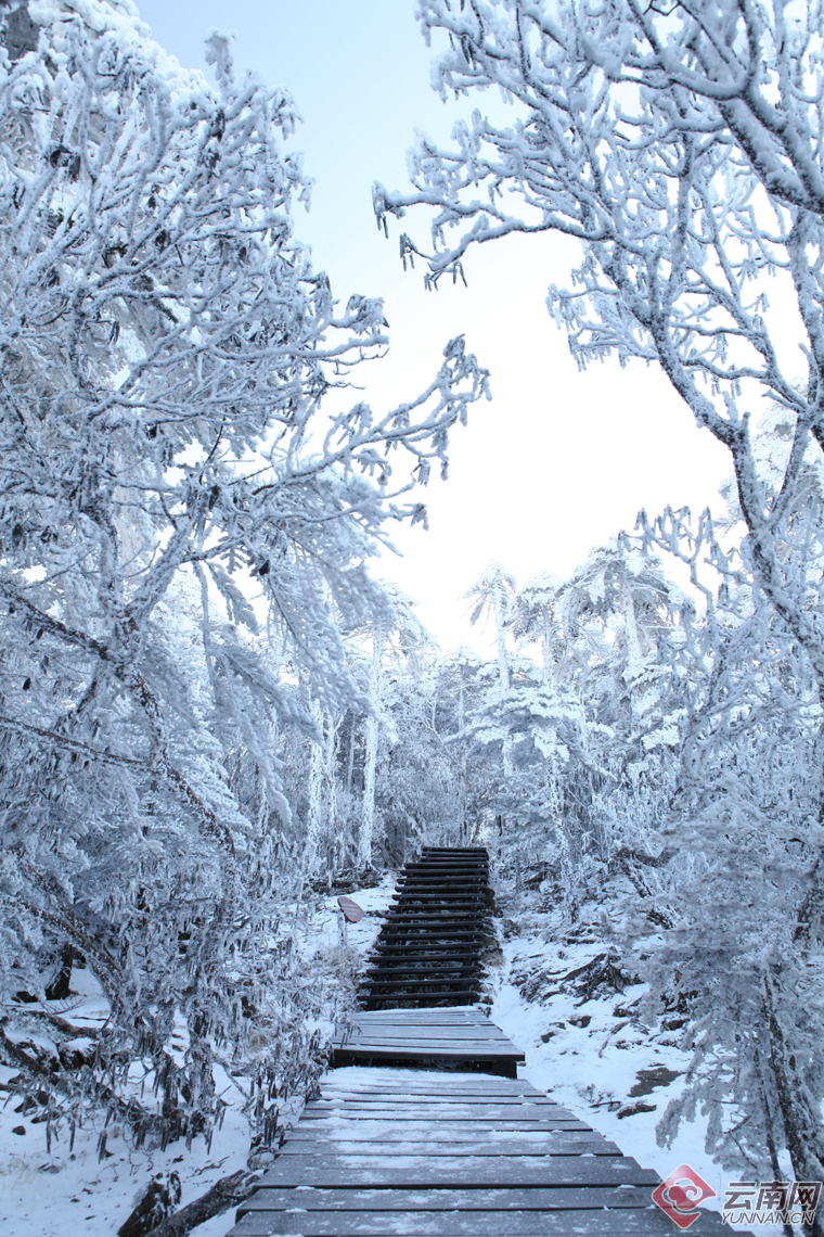 随着入冬的第一场雪来临,轿子山迎来了最美的季节。此时的它,宛如童话中的冰雪世界。