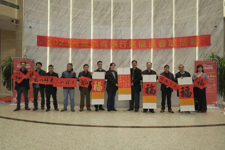 为弘扬中华优秀传统文化,丰富和满足市民群众文化精神生活,营造欢乐祥和节日氛围,落实“我为群众办实事”具体精神要求,9日,“挥毫泼墨送春联,龙飞凤舞迎新春”首场送春联活动在河源农商银行总行营业部举行,活动邀请河源书法名家现场书写春联,免费为市民群众送“福”、送春联。