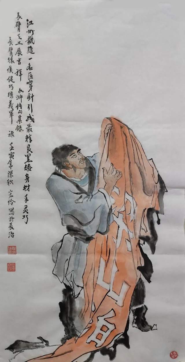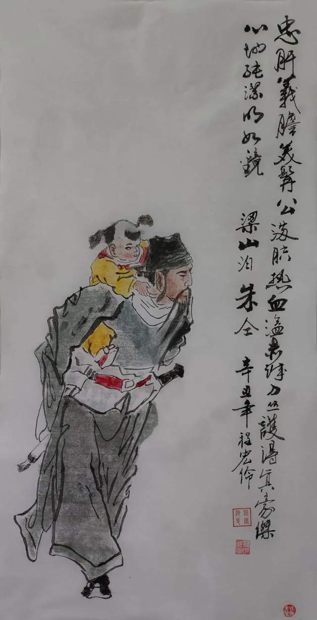 程宏伶,女,1948年出生于山西省长子县城南翠云山下的崔庄村,自诩翠云轩,幼年就喜欢画画,受父亲程芳庭先生和二哥程宏业的影响,有了一定的绘画基础。退休后在二哥的指导下画技长进很快。后又加入长治市老年大学的学习,水平不断提高。作品在省市县和兵器工业部多次展出并获得奖励和好评。程宏伶在2021年被评为翰墨名人.国贸兰亭杯二等奖获得者,2022年被评为“正能量艺术家”,入围全国书画人才资料数据库。本人为了提高自己的画作水平,不断在网络上搜寻当代美术大师的优秀作品作为参考。当看到孙敬会先生的水浒人物109将的作品欣赏时,被孙教授那深厚的绘画功底所折服,内心不由得产生要把这套画作临摹下来的想法,于是从2021年春季开始,到2022年12月结束,用时一年零八个月,由最初的形似到后来的神似,画技又有很大进步。期间不断请教画师益友,得到大家的肯定,一致建议我整理出书。在此特别声明,程宏伶的书作仅仅作为自已圈子内朋友观看保存,不存在商业行为,以谢好友们的支持和厚爱。