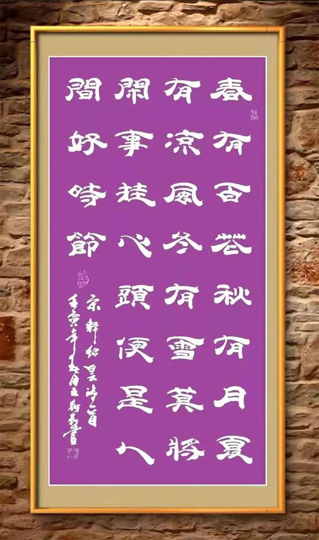 作品被人民大会堂、毛主席纪念堂、朱德纪念馆、首都图书馆、中国扶贫基金会、中国残联、中国儒商研究院、中国驻南非大使馆、东盟十国、外蒙大使馆、孟加拉大使馆、甘肃省伏羲庙、女娲庙、拉卜楞寺、五台山、中国妇女儿童发展基金会等收藏、多年来中国发展研究院作为国礼被国内外多方人士收藏。曾在三军仪仗队、国旗护卫队、多次在雪豹突击队、南苑机场、沧州机场、高炮团、低炮团挥毫泼墨。曾多次在边防哨所、新疆塔城、克拉玛依、伊利、和田、喀什。广西友谊关、北海边防、硕龙边检、阿尔山边防、哈巴河边防哨所、北屯兵团送去精湛的书法艺术,翰墨飘香鱼水情,丰富了部队的文化生活,提升了爱党爱国、铸就钢铁长城的坚定信念。歌颂人民子弟兵用青春和热血保家卫国的忠诚奉献精神。坚持十年进军营、奉献弘扬文化艺术。